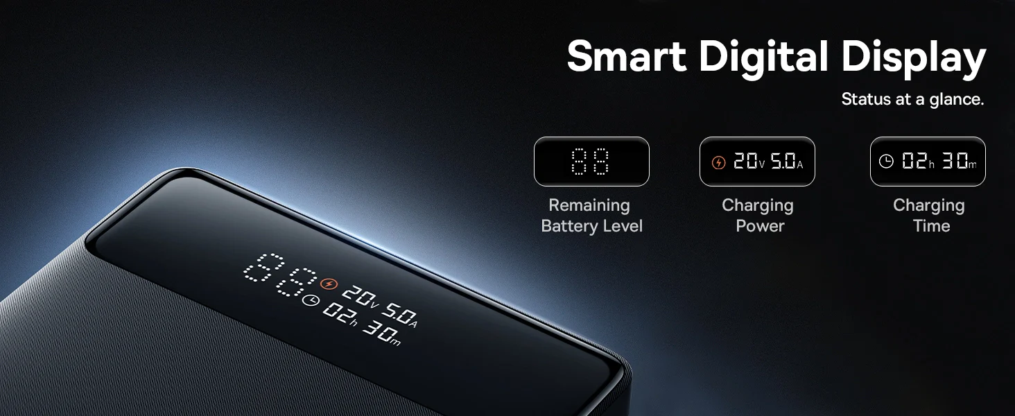 - When charging the power bank, it displays the time required to fully charge the power bank.