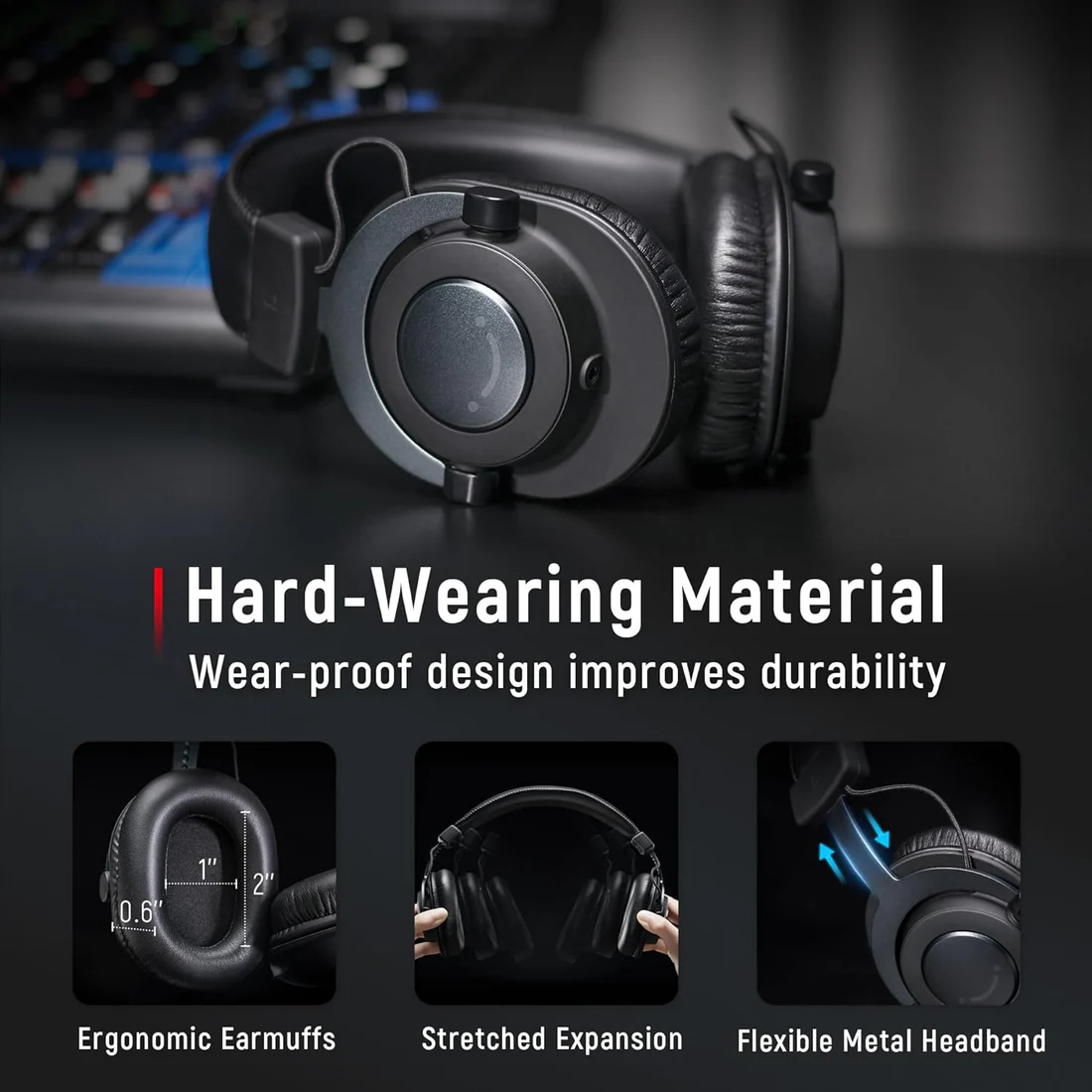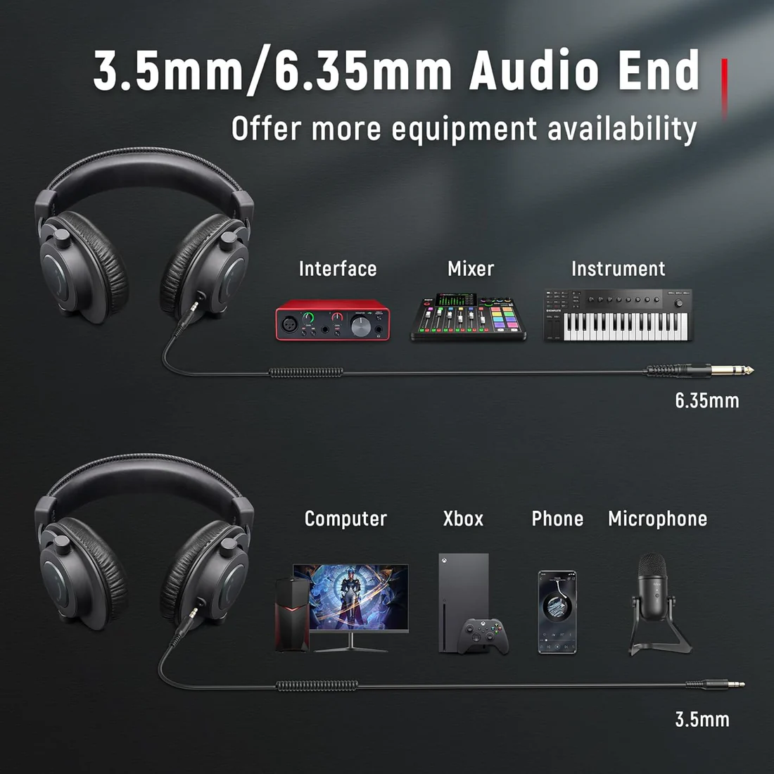 The FIFINE H8 Wired Studio Headphones are designed for precise audio monitoring and versatile use in recording, gaming, and podcast production. With powerful 50mm drivers and a closed-back design, they provide clear, detailed sound and effective passive noise isolation. The detachable cable with 3.5mm and 6.35mm compatibility ensures flexible connectivity with audio interfaces, mixers, and PCs. Built for comfort and durability, the retractable and adjustable design supports long listening and work sessions.
