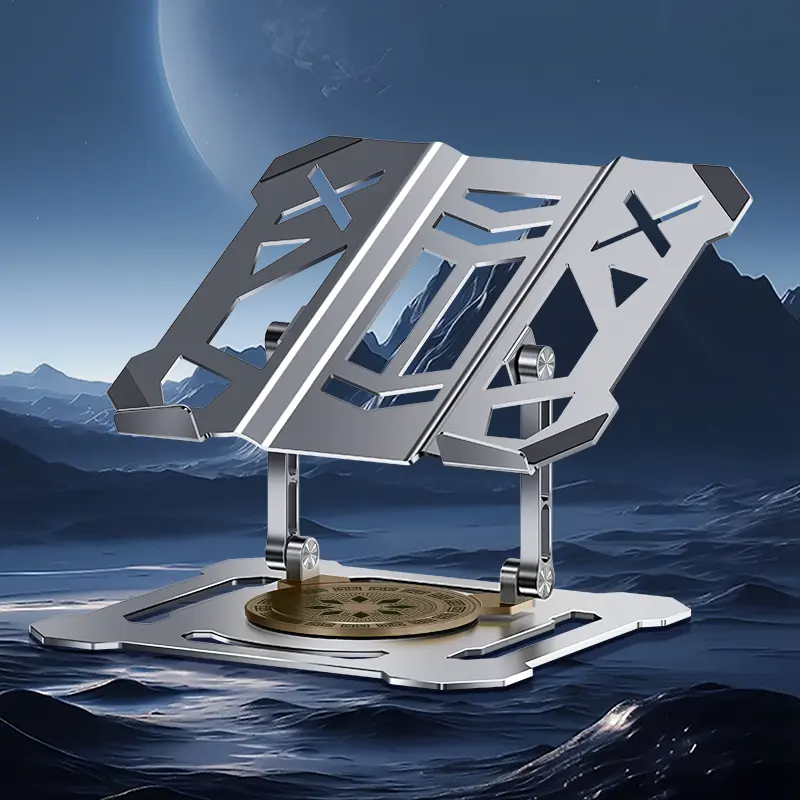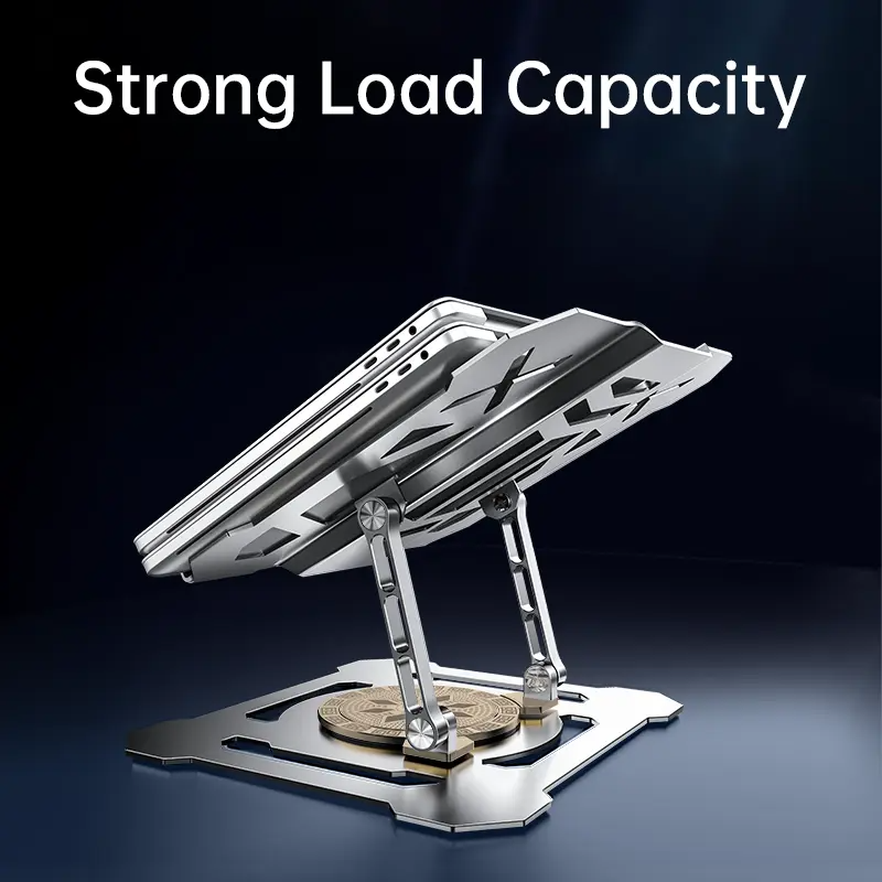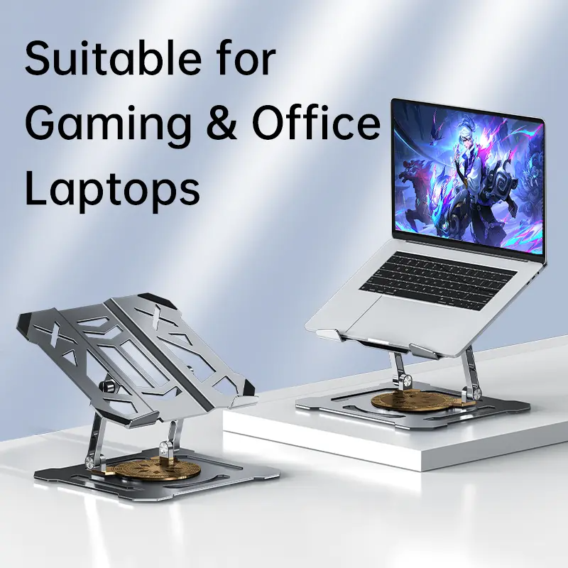 The Heavy Duty Gaming Laptop Stand is a robust foldable stand designed for 13″–19″ laptops. Featuring 360° rotation, stepless height adjustment, and a carbon steel alloy build, it provides maximum stability, cooling support, and ergonomic comfort.