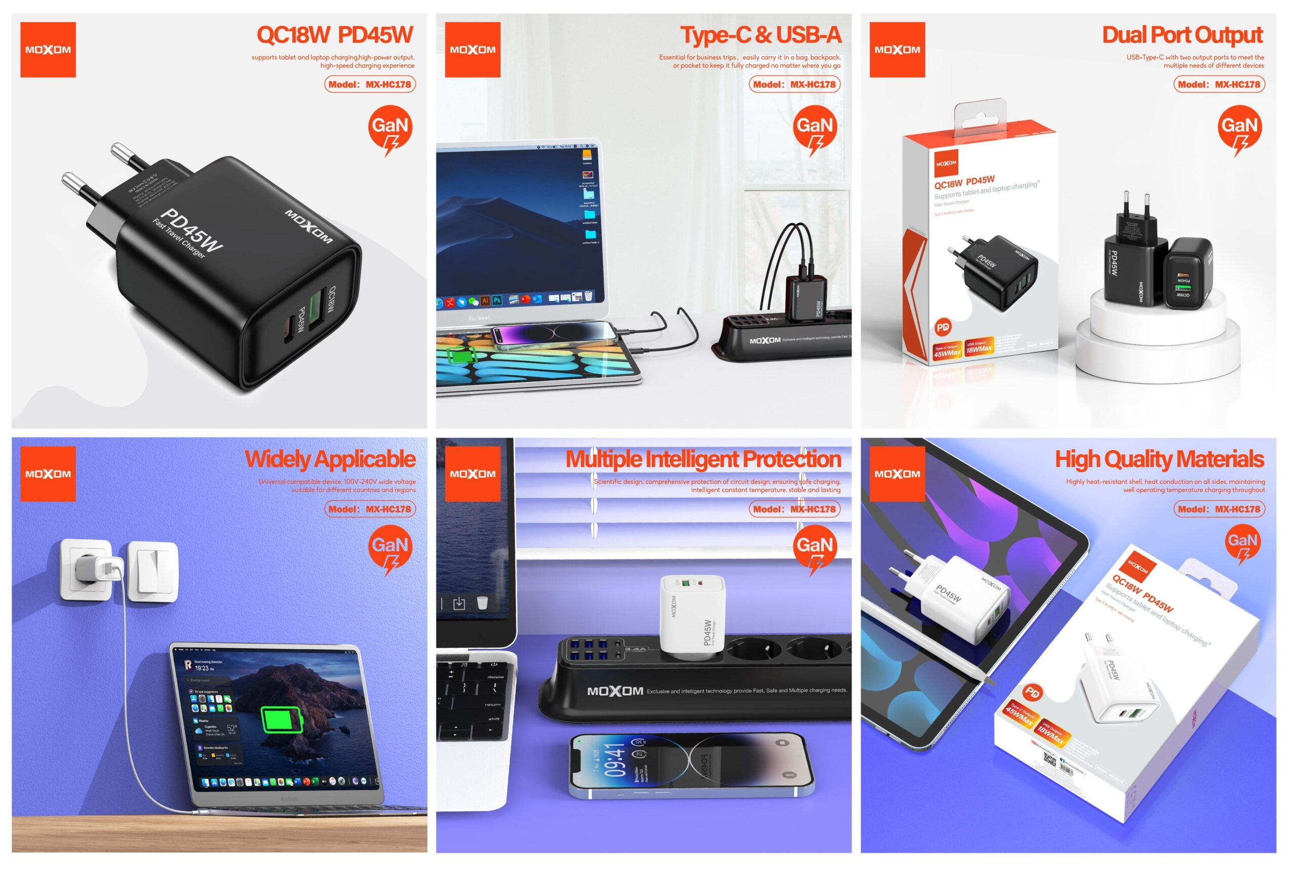 The Moxom MX-HC178 is built with integrated safety protections to help prevent overcurrent, overheating, and short circuits, ensuring safe and dependable operation. Its universal compatibility and durable construction make it a practical fast-charging solution for users who need efficiency without bulk.