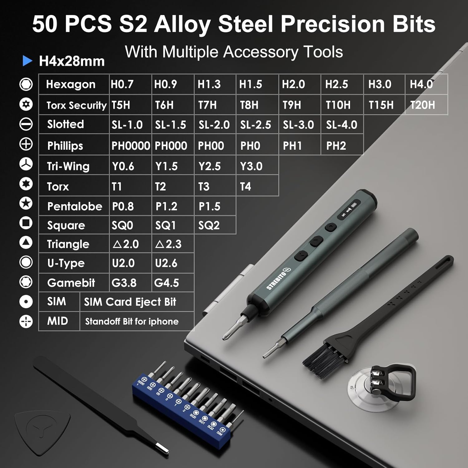 Upgrade your DIY and electronics repair toolkit with the STREBITO Mini Electric Screwdriver 67-in-1 Kit. This all-in-one rechargeable tool features 50 high-quality S2 precision bits and 5 adjustable torque settings, giving you full control for delicate electronics, laptops, smartphones, and other small devices.